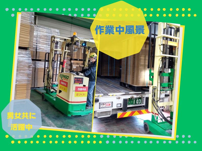 仕事内容 *… * 1分でわかる求人概要 *…* 「働きやすい職場認証制度」を取得の 東証プライム上場レンゴーグループ企業! ✅土日祝休み!!年間休日125日 ✅交替勤務が週替わりで働きやすい◎ ✅昇給あり&賞与年2回! ✅家族手当や退職金など福利厚生充実◎ ✅部署問わず有給が取りやすい環境◎ 有給休暇の消化は平均16日以上 ! ✅社員食堂は1食330円で節約可能! ✅手作業、力仕事ほぼなしで安心! ☆フォークリフト免許があれば、 学歴不問かつ経験より人柄で採用します! (入社日までの取得でOK/実務経験不問) ☆20代~40代の子育て中の方も働きやすい 環境整備に力を入れている 東証プライム上場レンゴーグループ企業! >>>具体的な仕事内容<<<  ̄ ̄ ̄ ̄ ̄ ̄ ̄ ̄ ̄ ̄ ̄ ̄ ̄ ̄ ̄ フォークリフトを使っての 製品の構内移動・運搬をお任せします。 ●受入作業 ▼製品の荷姿・数量・品名を確認 ▼倉庫へパレットごと運搬 ●ピッキング・ストレージ作業 ▼お客様からの依頼内容に基づき、 作成されたリストの通りに 倉庫内から製品をピックアップ ▼指定の置場に一時保管 ※こちらは日勤のみポジション ●積込・出荷作業 ▼トラックへの積込作業 届先・品名・数量に間違いがないか、 ドライバーと一緒に確認 >>>扱う商品<<<  ̄ ̄ ̄ ̄ ̄ ̄ ̄ ̄ ̄ ̄ ̄ ̄ ̄ 組み⽴て前の梱包用段ボールを 扱います。 ⻘果物、飲料、製造⼯場など様々な 企業へ、梱包⽤段ボールをドライバー が届けるために、構内にて作業を お願いします! >>>当社について<<<  ̄ ̄ ̄ ̄ ̄ ̄ ̄ ̄ ̄ ̄ ̄ ̄ ̄ 当社は、創業70年以上。 レンゴー株式会社の物流子会社です。 全国41拠点にて物流サービスを展開。 主に板紙・段ボール・紙器の配送を中心に、 一般企業の製品配送や引越し、倉庫管理 など、幅広い事業を手掛けています。 ✨「働きやすい職場認証制度」を取得✨ ◇労働時間の管理 ◇有給の取得推進 ◇昇給や賞与 ◇手当や休暇制度 ◇長期勤続の表彰制度 ◇退職金制度 ◇栄養◎の社員食堂 など充実の待遇をご用意しています。 長く安心して働ける環境です◎ 今回、事業拡大のための増員により 構内作業員を募集することとなりました。 未経験の方も歓迎しておりますので、 ぜひお気軽にご応募ください!