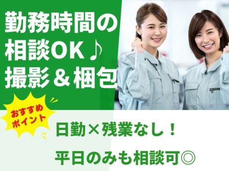 【保険制度】 雇用保険、労災保険、健康保険、厚生年金 待遇・福利厚生 【福利厚生】 髪型・服装・ネイルなど制限なし! 内勤業務のため自由な髪型、服装で出勤していただけます。 スタッフみんな自分の時間も大事にしながら働いており、オフィス内も和気あいあいとした雰囲気です。 定着率のよい職場です。 ▼屋内原則禁煙(喫煙室あり)※就業先により異なる grop・軽作業 #検査・検品