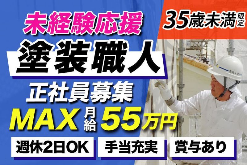 【仕事内容】 \未経験者・早期転職者応援/ 設立15年以上!塗装見習いを正社員で募集! ※35歳未満の方(例外事由3号イ)限定※ ★塗装見習いの魅力POINT★ ──────────── ①未経験OK!若手活躍 ──────────── 塗装工見習いとして那須塩原にてある研修施設にて1ヶ月研修あり! 同期もいるので切磋琢磨しながら基礎技術習得可能♪ ──────────── ②安定収入稼げる! ──────────── 月23.5万~55万円+各手当+賞与あり! キャリアフローもあり頑張った分は給与還元し評価します ※住宅手当あり(3万円/月) ──────────── ③選べる休日制 ──────────── 「土日祝休み(完全週休2日制)or日祝休み」が選択可能! 基本残業なし!施工ペースによっては早上がりする日も♪ 趣味や友達との時間も大切にできます! ──────────── 《仕事内容》 塗装工事の大規模修繕現場(マンション/ビル/店舗/施設 等)で塗装見習い業務です ■窓回り等の養生・下地処理 ■鉄部/内部塗装 ■大規模修繕工事 など 先輩スタッフが丁寧に指導、まずは簡単な業務からスタート! 少しずつできることを増やせば大丈夫です♪ 《給与・選べる休日》 【日祝休み】月23.5万~55万円 【土日祝休み】月20万~40万円 ※研修期間(入社後半年間)月19.2万円~ ★別途、手当あり(役職/家族/住宅手当 など) 《キャリアフロー》 ▷一般 → 主任 → 係長代理 → 係長 → 課長 → 部長 未経験でも2年目で主任に昇格したスタッフもいます! ★建設業未経験・新卒(高卒)・第二新卒から挑戦したい方も応援しています! 《職場環境》 20代の若い世代が多く活躍しています お昼は社長がみんなを連れて、ラーメンを食べに行くことも! 有給取得率は95%!社員が働きやすい環境を整えています◎ 食事会や現場が終わるごとに打ち上げを行うなど、明るい雰囲気の職場です ▷快適な作業環境を提供 ①熱中症対策として夏は空調服、冬は防寒具を支給 ②業務に必要な購入費として半年に一度1万円支給 《富士塗工について》 当社は設立15年以上の外壁塗装会社です 塗装職人スタッフの平均年齢は26歳♪ 社員旅行や懇親会など、楽しい社内イベントも多く開催しています! 直接話を聞きたい方や、応募はまだ…という方でも 富士塗工の「塗装見習い」にご興味持たれましたら、こちらにご連絡ください