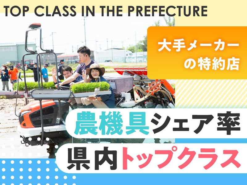 仕事内容 「宮城に根ざして、長く活躍したい!」 「経験ゼロだけど営業に挑戦したい」 「ワークライフバランスも大事にしたい」 ――その想い、【五十嵐商会】ですべて実現できます! ━━━━━━━━━━━━━━━━━━━━ ✨POINT01✨圧倒的な安定性 ━━━━━━━━━━━━━━━━━━━━ ●創業から“115年”の歴史を誇る専門商社 ●大手農機具メーカー「Kubota」の特約店 ●県内トップクラスのシェア率を達成 農機具・資材の提案を通して築いてきた、 多くの農家さんとの信頼関係が強み。 また「食」という景気に左右されにくい 業界だからこそ、長期キャリアを描けます◎ ★転居を伴う転勤もなし! ━━━━━━━━━━━━━━━━━━━━ ✨POINT02✨安心の営業スタイル ━━━━━━━━━━━━━━━━━━━━ ●新規のテレアポや飛び込みなし! ●数字よりも「人とのつながり」重視 ●1ヶ月の導入研修×OJTで着実に成長! 既存顧客が中心だから提案しやすい◎ ガツガツよりも、じっくり寄り添うのが当社の営業です。 あなたの活躍はしっかりと教えていきますのでご安心ください! ★もちろん頑張りはインセンティブで還元! ━━━━━━━━━━━━━━━━━━━━ ✨POINT03✨働きやすさ充実 ━━━━━━━━━━━━━━━━━━━━ ●お休みは固定の基本土日祝休み ●残業月平均20h以下と少なめ! ●夏季・年末年始は9日間の長期休暇! 社員が無理せず取り組めるよう、 しっかり休める環境を整えています。 8日間の有給奨励日もご用意◎ しっかりリフレッシュしながら取り組めます! ――安定も、営業スキルも、プライベートも手に入る当社で、 あなたも新たな一歩を踏み出しませんか? ▼ ▼ ▼ 【具体的な仕事内容】 ✅農家さんのもとへ訪問 1日30件程度(お客様1軒あたり月3回目安)を訪問。 出張はなく、営業所から車で30分以内の場所へ伺います。 ✅ヒアリング・ご提案 「最新の機械の調子」や「作業効率化の悩み」など、農家さんの“本音”をキャッチ! 引き出したニーズをもとに、 トラクターなどの大型農機具から肥料等の資材、最新のAI管理システムまで、 幅広くご案内し、解決策を提案します。 ✅アフターフォロー 部品交換やメンテナンスを実施します。 ※複雑な修理は整備担当者が対応します! 最新の農機具や資材をご案内し、 農家さんの「頼れるパートナー」として活躍していきましょう◎