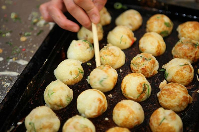 行列ができる人気のたこ焼き屋スタッフ