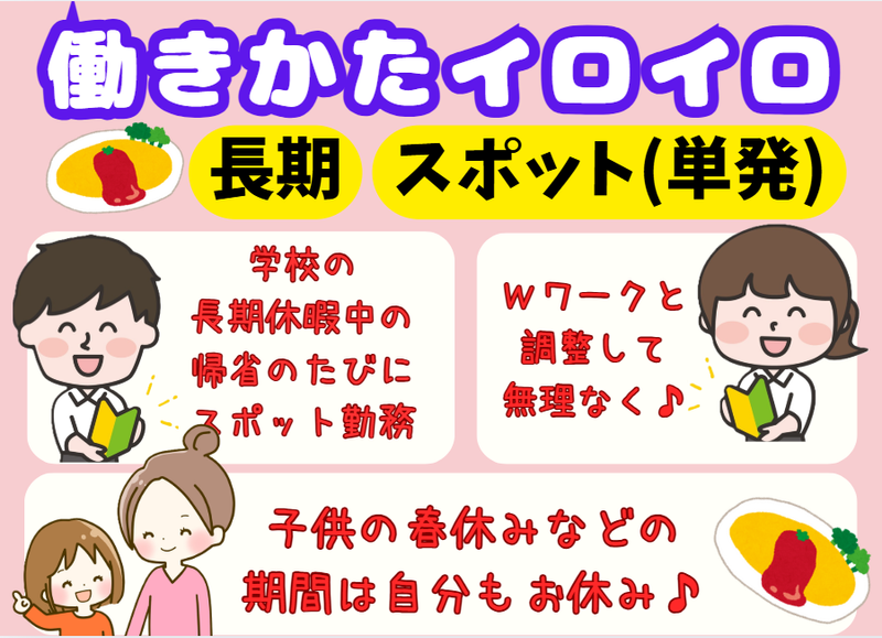 平日のみ・週末のみOK!長期はもちろん、スポット勤務もOK☆