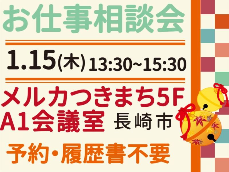 選考プロセス WEB・電話応募どちらも可!WEB面接OK ☎0120-68-2209 ■応募⇒面接⇒採用 ※応募~最短3日間で入社可! ※応募に相談会の参加は必要なし 【お仕事相談会】 ※予約&履歴書不要!服装自由! ※希望者のみ事前説明いたします *1/8(木)13:30~15:30 【大村市】サンスパおおむら商業棟2F 会議室A *1/15(木)13:30〜15:30 【長崎市】メルカつきまち5F A1会議室 ―――――――――――――――――― 「日程が合わない…」という方もOK! 長崎事業所(諌早市栄田町)で随時、 お仕事のご紹介が可能です! まずは、お気軽にご相談ください! ――――――――――――――――――