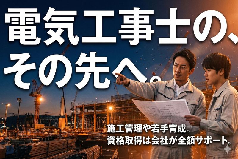 求めている人材 < 必須要件 > ✅第二種電気工事士 ✅実務経験3年以上 ✅普通自動車運転免許(AT限定可) < 歓迎スキル&資格 > ✅第一種電気工事士 ✅消防設備士、施工管理技士 ✅商業施設や大規模建築物の現場経験者 ※必須ではありません。 当社は、チームでの仕事が中心です。 スキル、経験はもちろんのこと、 「対話力」や「思いやり」が重要です。 人間関係の良さも大きな魅力です。 資格や経験を活かし、 さらなるスキルアップを目指す方を 当社は全力で応援します。 < こんな方にぴったり > ⭐経験を活かしてさらに成長したい方 ⭐将来的に現場管理や監督を目指したい方 ⭐キャリアの幅を広げたいと前向きな方