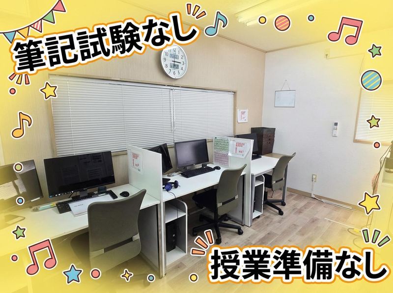 職場環境 大学生講師が中心ですが、 40代主婦の方も実際に活躍中! 少人数制の落ち着いた教室です。 ブランクがあっても安心して始められます。 喫煙所:なし(敷地内全て禁煙)