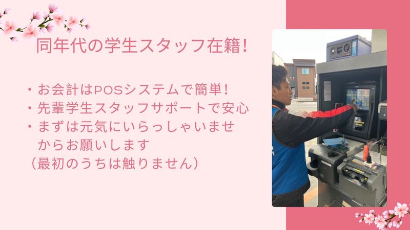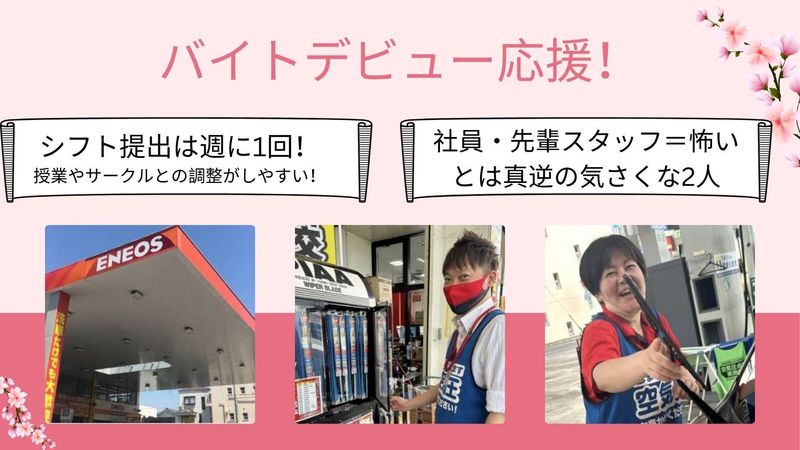 仕事内容 ✨ 求人の魅力 「学校帰りに、ちょっと働いてしっかり稼ぐ。」 清水駅前のENEOS清水SSでは、 学生さん・Wワークの方・フリーターが多数活躍中です。 授業や本業との両立がしやすい夕方シフトで、 「無理なく続けられる」 「自分の時間も確保できる」働き方が可能。 未経験スタートのスタッフがほとんどです。 ✅ 週2日~OK/1日3時間~勤務可 ✅ シフト提出は週ごとで柔軟対応 ✅ 日曜・祝日は時給+100円 ✅ 車・バイク通勤OK ✅ 制服・防寒着貸与 ✨ 仕事内容 ガソリンスタンドでの簡単な接客・サービス業務です。 給油のご案内、窓拭き、洗車機の操作サポートなど、 まずはできることからスタート。 整備作業や販売ノルマは一切なし。 明るくあいさつできればOKです。 操作方法もマニュアル化されており、初バイトでも安心です。 ✨ 研修制度 初日はあいさつや安全確認など、基本から丁寧に教えます。 先輩スタッフが隣でフォローするので、 1〜2週間で仕事の流れが自然に身につきます。 「車に詳しくないけど大丈夫?」という声も多いですが、 ほとんどのスタッフが未経験からスタートしています。 ✨ シフトの柔軟性 シフトは毎週金曜日に翌週分を提出。 土日で翌週(月曜〜日曜)のスケジュールが確定します。 学校の予定や本業の都合、テスト期間などにも柔軟に対応可能。 急な予定変更にも相談しやすい環境です。 ✨ スタッフの声 「授業終わりに働けて、生活費の足しになっています。」(大学生) 「本業後に副収入を得られて助かっています。」(Wワーク男性) 学業・仕事・プライベートを両立できる、 “ちょうどいいバイト”として人気です。 ✨ 応募を迷っている方へ 初バイトでも問題なし! まずは元気にあいさつができれば大丈夫です。 明るくチームワークの良い職場で、先輩がしっかりフォローします。 面接では仕事内容やシフトの組み方を丁寧に説明します。 「夕方だけ」「週末だけ」など、あなたの希望も遠慮なくご相談ください。