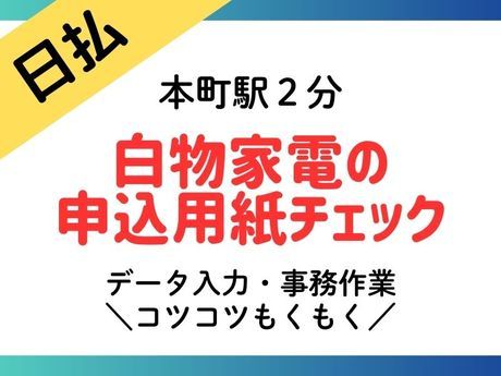 《白物家電の申込みFAXチェック》本町駅×日払い|お電話少なめ|データ入力|10名以上大募集♪