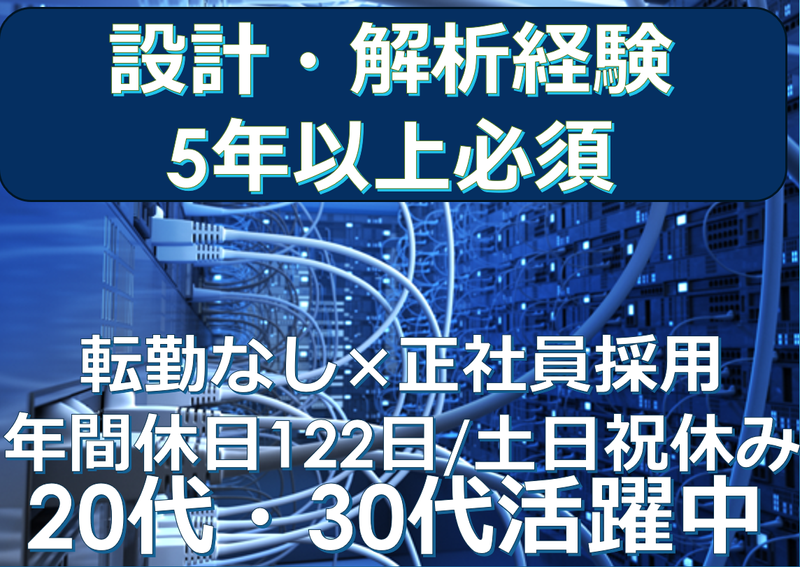 求めている人材 ■必須要件 ・設計業務または解析業務に関わった 経験がある方(5年以上必須) ・コミュニケーション能力 (社内外関連部署との調整ができる方) ・向上心があり、周囲と連携を 取っていける積極性をお持ちの方 ・責任感があり積極的に仕事に取り組める方 ・CATIA V5、Creoの使用経験がある方 ■歓迎要件 ・客先及び関連部門との調整能力 ・試験計測経験 ・配線設計能力(CATIA V5(電気系)) ・構造解析能力(CATIA V5、Creo(機械系)) ・要求分析、画面設計、通信I/Fの 仕様検討ができる方 (複数のシステムを連携動作させるのに 必要な技術検討ができる方) ■こんな方におすすめ ・国家の安全に関わる重要な プロジェクトに携わりたい方 ・最新のセキュリティ技術に触れたい方 ・長期的にキャリアを築きたい方 ・技術力を高めながら社会に貢献したい方 未経験の分野にも積極的に チャレンジできる方を歓迎します。 入社後はOJTを通じて、 必要なスキルを身につけながら 成長していただけます。 *経験者歓迎 *有資格者歓迎 *要知識 *要経験 *転勤なし