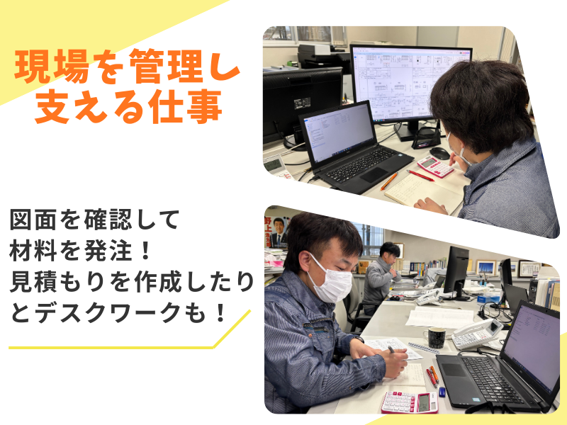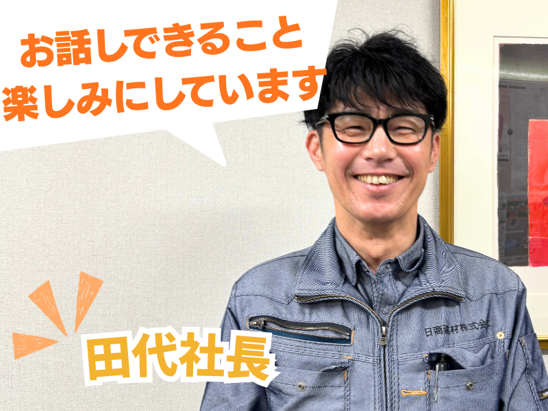 仕事内容: ◎口数は多くないけど愛されキャラ社長♪ ◎一緒に働くメンバーもシャイだけど仲間想い! ◎地域密着50年の安定企業 ◎建物づくりの専門領域で手に職がつく ◎内勤×現場のバランス勤務で腰を据えて働ける ◎未経験でも月給25万円スタート ◎土日祝休み&年休120日以上&残業ほぼなし あなたが普段目にしている お店・学校・病院・ビル。 「これってどうやって建っているんだろう?」 と思ったことはありませんか? 実は、建物は たくさんの専門会社が協力してつくられています。 その中で私たちは、 建物の“外壁”に関わる工事を担当しています。 ※外壁は、雨や風から建物を守る大切な部分。 ただし、 私たちが実際に工事をするわけではありません。 工事が安全に、図面通りに進むよう 現場を支える役割を担っています。 ====== 会社紹介 ====== 私たち日商建材は、 富山県富山市で約50年続く建設会社です。 杭工事・外壁工事・柱脚工事など、 建物を支える基礎部分の工事に関わっています。 取引先の9割以上は、 富山県内の建設会社や設計事務所。 長年のお付き合いのある会社が多く、 仕事量はとても安定しています。 私たちが大切にしているのは 「値段ではなく、品質で勝負する」という考え方。 その仕事の積み重ねが信頼につながり、 安定した仕事と落ち着いて働ける環境につながっています。 ====== 募集背景 ====== これからも地域に必要とされる会社として、 今後もさらに成長を続けたいという考えから 今回、2名増員行うことになりました。 真面目にコツコツ取り組める方であれば歓迎です。 ※特別な経験や資格は必要ありません。 入社後は半年以上かけて、図面の読み方・商品知識・現場の流れを学びながら、少しずつ仕事を覚えていき、 最終的には、現場を任せられる人になっていただきたいです。 ===== 仕事内容 ===== 外壁工事の始まりから終わりまで、 安全かつ計画通り進むよう最初は先輩と一緒に ・職人さんは、いつ・何人必要か ・図面通りに工事が進んでいるか ・材料は予定通り届いているか などの確認から始めていただきます。 業務の割合は、 現場と社内業務は半々。 どちらにも偏らず、体力的にも精神的にもバランスよく仕事です。 1つの現場は、 半日で終わる工事から1〜2か月かけて行う大きな工事があります。 まずは小さな現場からスタート。 経験を積みながら、少しずつ規模の大きな現場を任せていきます。 【入社後の流れイメージ】 <1〜2か月目>まずは現場を知る ・カタログで商品を覚える ・先輩と一緒に現場へ同行 <3〜4か月目>現場の流れが分かってくる ・現場訪問を重ね、段取りを理解 ・溶接や材料を張る様子を見て学習 <5〜6か月目>図面が読めるようになる ・図面(施工図)の見方を覚える ・必要な材料や数量の拾い出しができるようになる 【1日の流れイメージ】 ■ 現場がある日(月10日ほど) ・7:00集合 → 8:00現場到着 ・朝礼・材料搬入の立ち合い ・職人さんと一緒に材料を運ぶ ・進捗確認・簡単な打合せ ・お昼頃に事務所へ戻る ■ 現場がない日(月10日ほど) ・8:30出社/会社まわりの掃除 社内で ・図面や材料の確認 ・次の現場の段取り準備 ===== 社内メンバーや雰囲気は? ===== 社内は落ち着いた雰囲気で、正直けっこう静か(笑) その分、自分の仕事に集中できて、焦らずじっくり覚えられます。 プライベートに踏み込みすぎることもありません! でも、優しく仲間思いのメンバーばかり。 分からないことがあれば、もちろんすぐ聞ける環境です。 【メンバー紹介♪】 ・田代社長 落ち着いた雰囲気で話しやすい社長! 愛されキャラ! 趣味の釣り歴は30年。山菜・キノコ採りも趣味♪ ・Sさん(取締役) 見積や積算など技術面の相談役。 落ち着いた雰囲気で、話すと頼れる存在。 趣味は登山とお酒。 ・Hさん(入社8年目) 現場管理を中心に、積算・手配・段取りまで幅広く担当。 シャイだけど仕事は真面目で仲間想い! 休日は友人と飲みに行ってリフレッシュ! ・Mさん(入社2年目) 書類作成や請求まわりなどを支えるサポート担当。 明るく話しかけやすい癒しキャラ。 ======== 当社で働く魅力3選 ======== ◆直近の定着率100% 続けやすい理由がある♪ 居心地がいいだけではなく、「できることが増えた」「任せられることが広がった」など、成長をちゃんと見て評価します。 無理に任せることはせず、段階を踏んで仕事を覚えていける環境です。 ◆手に職がつく、希少な専門職で将来も安心 当社が手がけている仕事は、 対応できる会社が少ない専門分野のため安定して仕事があります。 手に職をつけながら、将来も安心して働けます。 未経験スタートの先輩も、二級建築士の資格を取得しています。 ◆プライベート時間も大切にできる 土日祝休みで完全週休2日制に残業はほとんどなし。年3回、5日以上の長期休暇もあるので、 趣味や私生活も充実させることができますよ! (三交代制なし、夜勤なし、出張なし) ======== Hさん(入社8年目)に インタビューしてました♪ ======== 《仕事