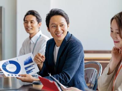 職場環境 いきなり一人で任せることはありません。慣れるまでは、先輩スタッフがしっかりフォロー。お客様対応の場にも同席しながら、業務の流れや提案のポイントを丁寧に共有していきます。「これで大丈夫」と自信を持って対応できるまで、相談・確認がしやすい体制を整えています。