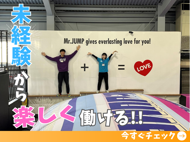 仕事内容 ✨TVやSNSでも話題の人気施設♪ ✨20~30代の男女スタッフが中心に活躍! ✨未経験スタートの方が多数活躍中◎ ✨自転車・バイク通勤OK♪ ★…★…★…★…★…★…★…★…★ ◆◇ トランポリンパークMr.JUMP ◇◆ \ サポートSTAFF募集♪ / ★…★…★…★…★…★…★…★…★ 【具体的には…】 ■遊具のサポート業務 ✅お客様のご案内 ✅安全装備の装着補助 ✅店内の清掃 ✅備品のチェック・補充 など お客様がいらっしゃらない時間帯は、 清掃や備品の整備などをお願いします♪ 。:+.゜。:+.゜。:+.゜。:+.゜。:+.゜。:+.゜ <トランポリンパークMr.JUMP> 当店はトランポリンだけでなく ボルダリングやスライダー、 クライミングなど様々な アトラクションがあり、子供から 大人まで楽しめる施設です♪ 。:+.゜。:+.゜。:+.゜。:+.゜。:+.゜。:+.゜ <知識や経験不問✨> ほとんどのスタッフが未経験から スタートしています! 入社後はスタッフもお客様も 安全第一で運営できるように 先輩スタッフがしっかり サポートします! 何かわからないことがあれば なんでも聞いてください♪ トランポリンは全身運動に良いので 健康的に働きたい方におすすめ♪ シェイプアップも◎