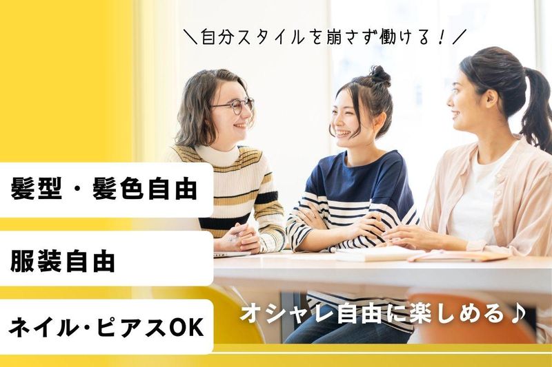 【保険制度】 雇用保険、労災保険、健康保険、厚生年金 待遇・福利厚生 【福利厚生】 電子レンジ完備 自動販売機あり 置き菓子あり(有料) 服装自由 髪型自由 髪色自由 ピアスOK