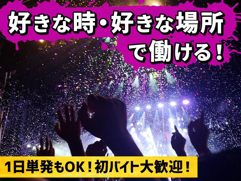 求めている人材 ✨未経験者歓迎!経験不問! 大学生・Wワーク歓迎✨ ~~~~200名以上の大募集~~~~~ ⭐履歴書不要のWEB登録実施中⭐ オンラインにて登録会を実施中! 友達と一緒にバイトデビューも歓迎♪ ライブや舞台に興味がある方におすすめ! ✅年齢不問 ✅20代〜40代が幅広く活躍中! ✅未経験者大歓迎/経験不問 ✅音楽知識不問!/学歴不問 ✅若手~中高年世代まで多数活躍中! 「大型フェスに携わりたい」 「学校が休みの時だけ働きたい」 「好きなアーティストを間近で見たい」 志望理由はなんでもOK♪ *設営や軽作業、建築経験のある方、 飲食経験者、販売経験者の方も歓迎! *副業OK *WワークOK *扶養控除内OK *ブランクOK