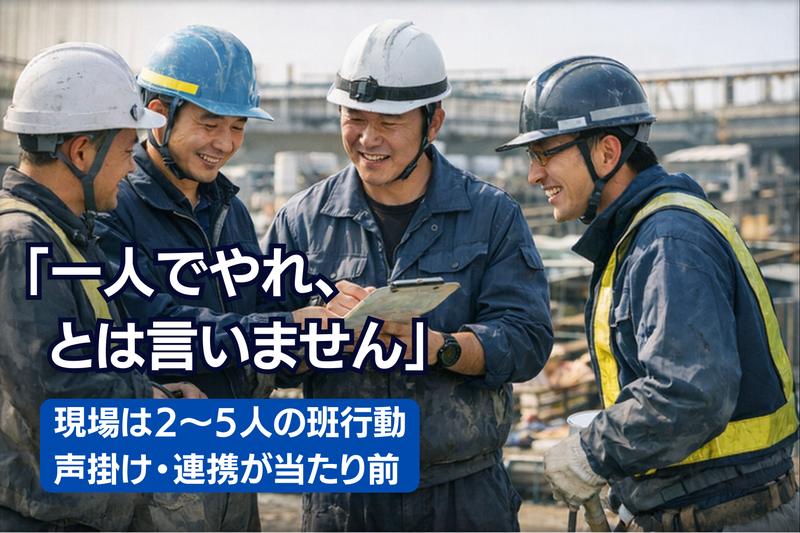 仕事内容 ╭ー╮ 目の前の作業が、誰かの安心につながる現場です 公共の仕事を、班で支えています ╰ー╯ □ 公共インフラ中心の現場で、仕事が途切れにくい □ 2〜5人の班行動。声かけと段取りを大切にします □ 未経験でも、任せきりにしない育成設計 □ できることが増えた分、条件に反映します º‧┈┈┈┈┈┈┈┈‧º 【仕事内容】 朝は集合して、その日の段取りを確認。 現場は関東一円で、 橋・線路・高速道路など公共インフラ工事が中心です。 作業は2〜5人の班体制。 役割をそろえ、声をかけ合いながら進めます。 一人の判断が全体に影響する仕事だからこそ、 「確認」「相談」を何より大切にしています。 創業以来無事故。 徹底した安全管理ができているのも、 チームで動く文化が根付いているからです。 数年前までは民間工事が中心でしたが、 公共案件が増え、仕事量も安定。 班を増やすための増員募集です。 º‧┈┈┈┈┈┈┈┈‧º 【この仕事のポイント】 □ 社会インフラを支える現場 鉄道・橋梁・耐震補強など、 暮らしを下支えする仕事に関わります。 □ チーム主語で動く文化 誰か一人が抱え込まない。 危ないと感じたら、すぐ声を出します。 □ 未経験でも入りやすい理由 最初は道具の名前と一日の流れから。 班に入り、一緒に動きながら覚えます。 □ 資格取得で仕事の幅が広がる 必要な資格は順番に取得。 費用は会社がサポートします(規定あり)。 ╭ー╮ 年齢ではなく、 現場での向き合い方を見ています ╰ー╯ º‧┈┈┈┈┈┈┈┈‧º 【育成・制度】 ・OJT中心。班の中で動きを覚えます ・資格取得支援あり(全額補助/規定あり) ・できる作業が増えた分、昇給に反映 ・社会保険完備、交通費支給 ・現場規程に基づく安全教育を実施 º‧┈┈┈┈┈┈┈┈‧º 【こんな方に合う仕事です】 ・「ここ、教えてください」と素直に聞ける ・分からないことを放置しない ・段取りや約束を守って進められる ・チームで役割をそろえるのが苦にならない 経験の有無は問いません。 現場で一緒に動けるかを大切にしています。 ╭ー╮ 技術より、まず人柄と素直さを見ています 現場では「一緒に動ける力」が一番の武器です ╰ー╯ 【職長インタビュー】 「仕事は、どこでやるかより、誰とやるか」 以前、結誠工業で5年ほど働いていました。 でも持病が悪化して、片方の視力がほとんど見えなくなってきたんです。 この体では現場で安全に動くのが難しい。そう感じて、退職しました。 事情は言えず、「自己都合」という形で離れました。 そのあと別の仕事を始めたんですが、 体調の不安もあって、うまくいかないことが続きました。 この先どう働いていくか、悩んでいた時期です。 そんな時に、たまたま社長と連絡を取る機会がありました。 そこで退職の本当の理由を話したら、社長がこう言ってくれたんです。 「ちゃんと話してくれてありがとう。 不自由な部分は俺や他の人も支える。 もう一度、できることから現場を手伝ってくれないか。」 正直、あの時の言葉で気持ちがふっと軽くなりました。 迷惑をかけたくないと思って一人で抱えて、 マイナスの選択をしていたんだなって。 話せたら、こんなに楽になるんだと感じました。 今も視力は戻っていません。 それでも、できることを班のみんなが自然に割り振ってくれて、 僕は職長として現場に立っています。 同じように悩みを抱える人が、 ネガティブにならないように声をかけたい。 どんな人でも「今が楽しい」と思える現場にしたい。 そう思って、毎日の仕事をしています。 仕事はどこでなにをするかじゃなくて、誰とするか。 それが今の自分の柱です。 結誠工業の「協力して強力」は、 こういう日々の声かけの積み重ねでできていると思っています。
