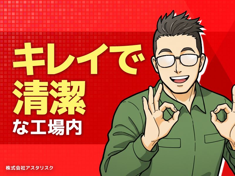 仕事内容: ライン作業なし!座り作業のみのお仕事⭐ スマートフォンに使用される部品を製造する 機械を作っている工場でのお仕事になります。 部品の大きさはリップクリームくらいの大きさなので扱いやすいです。 【お仕事の流れ】 ✅組立工程で作られた部品を専用の測定機にセット ✅測定結果が出たら問題がない部品と結果がNGの部品に仕分ける その他、部品の目視検査もお任せします。 部品の表面にキズがないか、部品がちゃんとついているか、を確認します。 ・作業は全て座って行います! 専用のスペースでモクモクと作業を行います。 座りっぱなしで疲れやすい方はお好きなクッション等を持ち込んでもOKです⭐ ライン作業ではありませんので、自分のペースでお仕事を進められます。 同じ作業の繰り返しが得意な方にピッタリなお仕事です。 【職場環境について】 ・空調完備のキレイな工場です★ ・ウォーターサーバーあり!水分補給は自由にしてOK⭐ ・御手洗いも自分の好きなタイミングで行けます。 ・髪型・髪色自由!メイクも完全自由です⭐ └明るい髪色やすっぴん、濃いめのメイクなど自分の好きなスタイルでOK ・食堂完備!お弁当の注文も可能⭐ ・お弁当の持参もOKです。 ・20代~30代、40代など幅広い世代の女性活躍中⭐ ・未経験スタートの方がほとんどの職場なので丁寧にお仕事を教えてもらえます。 ・アスタリスクの仲間も多数在籍中⭐ ・アスタリスクの担当がしっかりサポート⭐相談事や困ったことはすぐにご相談ください。 \職場見学OK⭐/ 実際の作業の様子や職場の雰囲気などを見てから 就業を決めていただけます。 職場見学をご希望の方はご応募の際にその旨をお伝えください。