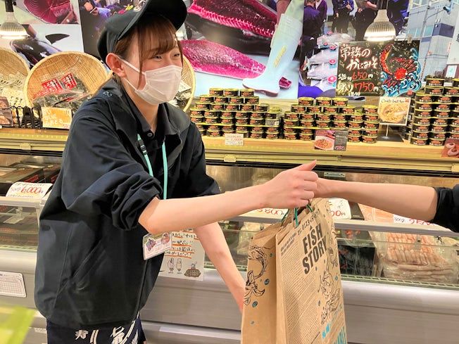 立ち食い寿司屋物販スペースでの販売スタッフ