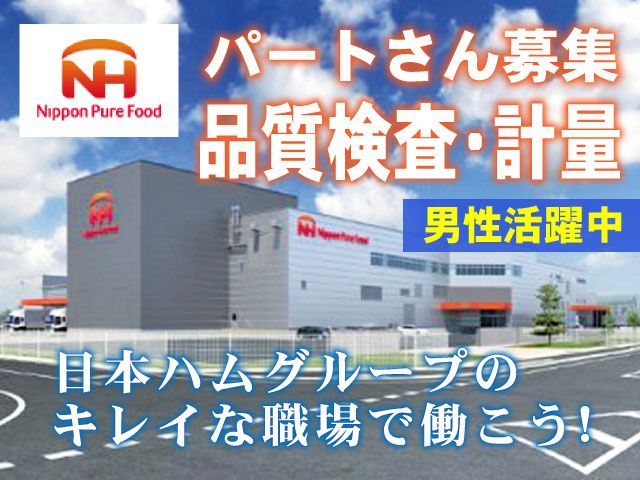仕事内容 【伊勢崎市/食品工場スタッフ/パート】 伊勢崎市東上之宮町にあります、 『日本ピュアフード株式会社 伊勢崎プラント』 にて品質検査や計量作業(調味料など)を行う パートスタッフを募集いたします! <こちらのお仕事情報のポイント> ・日本ハムのグループ企業で「充実の福利厚生」 ・土日祝休みでワークライフバランスも◎ ・フルタイム勤務で月給177,500円~! (時給に換算すると、1,100円~のスタート!) ・日勤専門のパートさん募集! ・20代、30代、40代、50代、 ミドル、中高年の男性が活躍中! ・食品製造業の未経験者もOK! ・正社員登用アリ! ・年間休日120日以上(今年は123日) <仕事内容> ・工場内での品質検査 ・お肉の加工に使用する調味料などの計量 【 詳細 】 〇品質検査 ・原材料の品質チェック ・製造過程での検査 ・製品完成及び出荷時の品質検査 など。 〇計量 ・お肉の加工に使用する 調味料(油や醤油、香辛料など)や粉末の計量 ・計った調味料を使いやすいように仕分ける ・仕分けた調味料をワゴンで製造現場へ運ぶ ・計量で使用した器具などを洗浄 など。 ※10kg~30kg程度の袋や一斗缶などを 持ち上げて計量機器に投入する作業もあり、 力を必要とする作業があります。 〇その他、製造にかかわる付帯業務 (器具の洗浄、清掃、備品補充など) <幅広い年齢の方活躍中> 現在、工場内では20代、30代、 40代、50代、ミドル、中高年の 男性が元気に活躍中! 計量業務を行うスタッフの半数以上が 男性となっています。 フリーターやお仕事にブランクのある方、 直接雇用で長く働きたい方など、 まずはお気軽にご応募ください。 <もちろん未経験の方もOK> 『食品工場で働いたことがない』 『今まで派遣スタッフで働いていたけど 安定したところで働きたい』などなど 製造業が未経験の方もOKです! 現場で分からないことがあれば、 社員や先輩パートさんが しっかりお教えしますので、 安心してお仕事をしていただけます。 <ちゃんと稼げます> フルタイム勤務で月給177,500円~! 時給換算すると1,100円~となりますので、 土日祝休みの日勤でもしっかり稼げます! <正社員登用制度アリ> 当工場は正社員登用制度があり、 安定した会社で正社員として 働きたいという方にピッタリ! 正社員登用の実績もありますので、 これまでは派遣社員や契約社員として 働いていたけれど、 将来を見据えて働きたいという方は この機会にぜひ挑戦してみませんか? <土日祝休みでワークライフバランスばっちり> 土日祝休み(完全週休二日制)で 年間休日は123日だから ワークライフバランスもばっちり! “しっかり働き、しっかり休む”ができる メリハリのある職場です! <安定した収入!福利厚生充実!> ・月給制なので安定した収入 ・正社員登用制度あり ・うれしい社内販売あり 日本ハム(株)グループの製品割引あり! ・食事スペース、休憩室(男女別)完備 休憩時間をゆっくり過ごせます! ・制服のクリーニング代会社負担 制服は、帰りに専用のクリーニングBOXに 入れるだけでOK!自分で洗濯する必要なし! 嬉しい待遇がたくさんの当工場で 一緒に働きましょう!