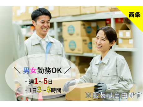 求人詳細 学生・主婦(夫)・シニアまで活躍◎\週1~5日&最低3時間~働ける柔軟なシフト制♪/倉庫内での商品仕分けスタッフ 【給与】 時給1,085円~1,357円 【シフト】 週1日以上、1日3時間以上 【勤務地】 東広島市 【最寄り駅】 西条駅 子育てが忙しい主婦(夫)の皆様! 授業や部活で大変な学生の皆様! 長時間の仕事はきついシニアの皆様! ー朗報ですー \広島大学~徒歩10分◎の好立地!/ スキマ時間で勤務可能! 週1日、3時間~働ける安定現場です♪ 東広島エリアにて働きやすさに特化したお仕事が登場 自分のライフスタイルに合った働き方を実現することが可能です! 難しい作業は一切なし。 数回やれば一人で黙々とこなすことができるお仕事なので安心♪ 『副業・アルバイトをお探しの方』応募ボタンをポチッ♫ 《注目ポイント》 週1日~5日の中で希望の日数でお仕事可能で、時間も1日3時間~最大8時間まで選択可能♪ 柔軟に対応できるシフト制がオススメです。 試用期間詳細 試用期間なし 勤務期間 長期(3ヶ月以上) シフトの自由度は高いですが、継続的に勤務をしていただける方が希望です。 勤務形態 シフト制 特徴・メリット 日払い/週払い/体を動かす仕事/大量募集(10名以上)/すぐ働ける 社会保険 健康保険/厚生年金/雇用保険/労災保険 連休に関して GW・お盆・年末年始も稼働しているお仕事先になりますので、ご協力いただける方が望ましいですが、帰省などどうしても難しい場合はご相談ください。 応募後のプロセス エントリー後弊社(080-3545-1997)からご連絡差し上げます。 応募先電話番号 082-503-7071 ◆受付時間 火~木 9:00~18:00 月・金 10:00~19:00 土・日・祝 ネット応募のみ受付 ※ネット応募は、営業日17時までのご応募を(080-3545-1997 応募対応携帯)から当日中にお電話させていただきます。 ※土日祝のご応募はネット応募のみ受付となり、翌営業日にご連絡させていただきます。 ※GW・お盆・年末年始等の大型連休はネット応募のみ受付となり、翌営業日のご連絡となります。 尚、お急ぎで確認を取られたい方は、(082-503-7071 採用担当)までご連絡ください。