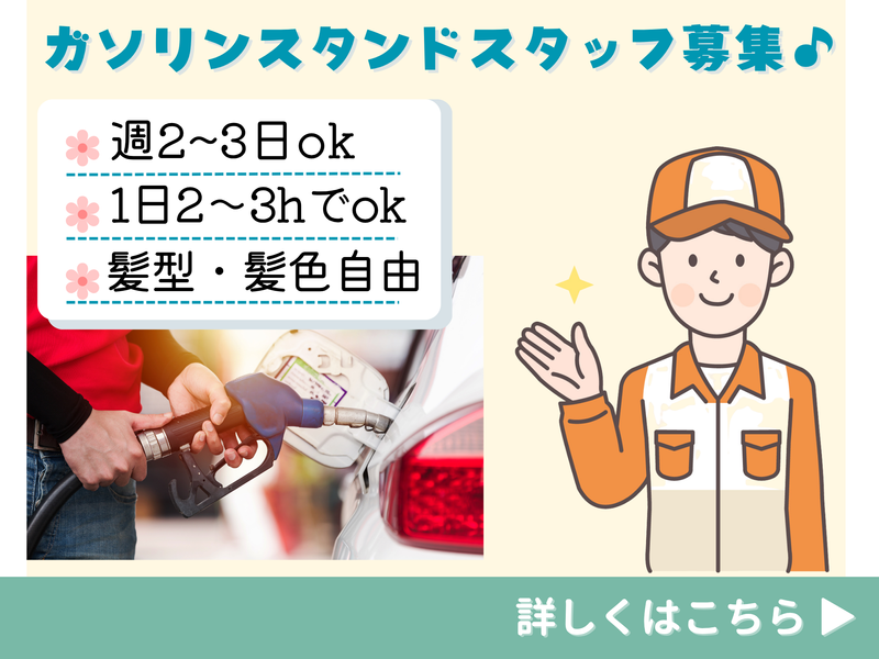 仕事内容 フルサービスのガソリンスタンドで 給油作業・お客様対応・ お会計をお願いします。 軽油、灯油の配達業務。 POSレジの開店業務、閉店業務、金銭管理など。 日報作成。銀行入金。 ✅接客 ✅給油 ✅洗車 ✅清掃美化 ✅電話応対 などをお願いします。 << おすすめポイント >> ⭐日曜祝祭日休み、8時-18時勤務(最大)  ̄ ̄ ̄ ̄ ̄ ̄ ̄ ̄ ̄ ̄ ̄ ̄ ̄ ̄ ̄ ̄ ⭐危険物乙四資格者  ̄ ̄ ̄ ̄ ̄ ̄ ̄ ̄ ̄ ̄ ̄ ̄ ̄ ̄ ̄ ̄ ̄ ̄ ̄ ̄ ⭐自分を表現できる舞台です  ̄ ̄ ̄ ̄ ̄ ̄ ̄ ̄ ̄ ̄ ̄ ̄ ̄ ̄ ̄ ̄ ̄ ✿ ご応募お待ちしております ✿