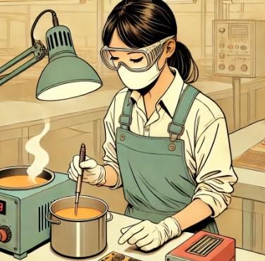 工場内ではんだ付け作業