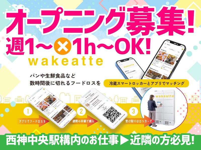 仕事内容 ★新事業スタート!オープニング募集★ 働きながら社会貢献、地域活性化ができるお仕事! \働きたいときに働けます/ <週1~、1日1時間~OK!シフト融通抜群!> <面接時履歴書不要◎オンラインも対応可> <服装・髪色髪型・ネイル・ピアス自由!> *かかわるサービスは…* フードロス削減のために スーパーやパン屋で売れ残った食品を 駅のロッカーでアプリを通してお得に購入できる♪ そんなロッカーが西神中央駅に登場します! ================== とにかく “家の近さ” が働きやすさのポイント! ちょっとしたスキマで働けるから…近隣の方必見のお仕事! 「難しそう…?」と思うかもしれませんが、 実際はとってもシンプル◎ <お仕事の流れ> ・駅から車で10分圏内の食品提供事業所に行き、食品を回収 ・食材を袋詰め&写真撮影 → 専用アプリにアップ ・駅のフードロスロッカーに入れる また、近くの駅構内のお店や、 駅直結の商業施設内のお店(パン屋さん・ケーキ屋さん等)から連絡が入れば、 取りに行きさらにロッカーに補充。 ★ほとんどがご近所のお店なので、負担はほぼナシ◎ □じっとして働くのが嫌! □気づいたら時間が経っているバイトがしたい! そんなあなたにピッタリです! 1日1時間~OKだから、 「食品を車で取りに行くだけ」や 「ロッカーに入れるだけ」でもOK! 家事や授業の合間にちょこっと働きたい方にピッタリです。 ※免許のない方もご応募大歓迎です!