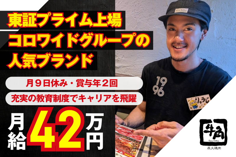 その他 アピールポイント *===========================* *圧倒的なブランド力とマーケティング戦略* *全国約600店舗!日本最大の焼肉チェーンで* *飲食人としての更なる成長を目指す!!* *===========================* 「美味しく、リーズナブルで、サービスと 雰囲気が良い」というコンセプトでスタートした 「牛角」は、創業からの変わらぬ理念を持ち続け、 日本国内店舗数No.1の焼肉チェーンに成長しました。 定番メニューからSNS映えする商品まで、 牛角ならではの価値を創出し続けることで、 業界をリードしています。 *≪こんな方が利用されます≫* 20~30代の若者層、ビジネスマン、ファミリー層まで 幅広い顧客層が利用されています。 *≪こんなことが学べます≫* ●焼肉店特有の食材知識と調理技術 ●顧客満足を高める接客サービス ●店舗運営とマネジメントスキル ●マーケティングと販売促進戦略 ●衛生管理と品質コントロール ●チームワークとコミュニケーション能力。 お客様を驚かせ、喜ばせるための創造的な プロセスに参加し、飲食業界でのキャリアを 一緒に築き上げましょう。 *☆★ 求職者の皆さまへ ★☆* この度は、当社の求人をご覧いただきありがとうございます。 面接ではあなたの夢、得意なこと、これまでのことなど、 ざっくばらんにお話ができたらと思っています。 お仕事No:【正社員/マネージャー候補】牛角 大船店 許可番号(人材派遣等): null