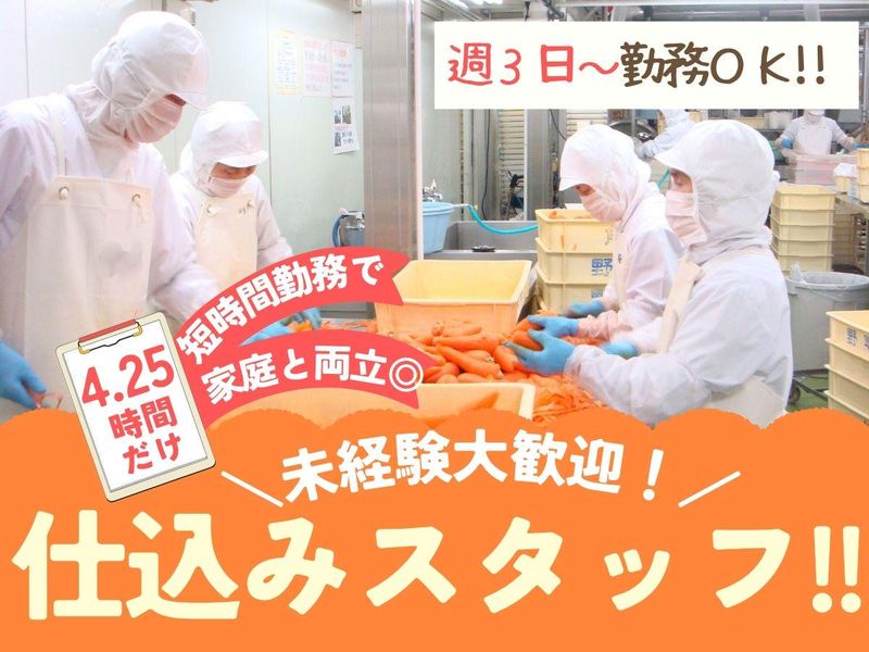 仕事内容 \\ 注目ポイント // ✨急募☆短時間で賢く稼ぐ! ✨週3日~OK!扶養内勤務も◎ ✨シンプル作業で未経験も安心♪ ✨久しぶりのお仕事復帰にも◎ ─・・✦・──────────── 【お仕事内容】 工場内で、お弁当の仕込みスタッフとして ⏩野菜の皮むき ⏩入荷した食材の検品 などをお任せします! 調理というよりも調理の前段階の軽作業! ✅検品作業は、 入荷した食材の箱を開けて、 傷や汚れがないか、 規格外ではないかなどのチェック作業! 安全で衛生的な 食材の品質を保てるように 入念なチェック業務になります。 ✅特別な知識やスキルは不要! 繰り返しのシンプル作業なので、 慣れればどなたでも活躍できます♪ ⭐モクモク作業が好きな方 ⭐作業に集中したい方 ⭐久々に仕事復帰される方 などにもピッタリです❗ ━━━━━━━━━━━━━━━ ✨嬉しいメリットたくさん♪✨ ━━━━━━━━━━━━━━━ ✨シンプル作業×短時間勤務! 勤務は、10時45分~15時まで! 朝は余裕をもって出勤できて、 子供が帰ってくる前に帰宅できるから 家庭との両立が出来ます♪ ⛅扶養内で働きたい方に… 週3日~OKだから、ご希望の収入・ 働き方にあわせて調整可能! ⛅Wワーカーも活躍中! 午後の時間は 他のお仕事とも両立しやすく、 収入の上乗せにもおすすめ☆ ⛅久々のお仕事復帰にもぴったり♪ 「なるべく簡単な仕事がいい」 「人と話すより黙々作業が好き」 そんな方におすすめです! ✊「家庭優先で働きたい」 ✊「子どもの手が離れて時間ができた」 という方も無理なくスタートできます♪ 簡単作業だから長期継続可能! まずはお気軽にご応募ください◎ お会いできるのを楽しみにしています! 。oOo。.:*:.。oOo。.:*:.。oOo。.:*:.。O。o