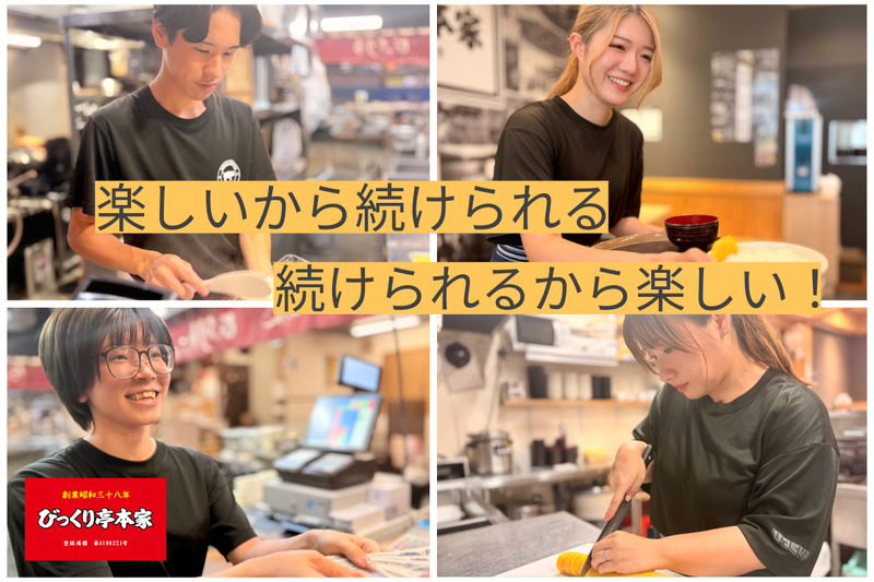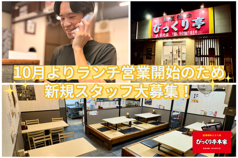 仕事内容 \✨新年度に向けてお仕事探し開始✨/  ̄ ̄V ̄ ̄ ̄ ̄ ̄ ̄ ̄ ̄ ̄ ̄ ̄ ̄ ̄ ̄ ̄ ̄ 《びっくり亭本家 太宰府店》 10:00〜15:00の間で働けるランチstaff募集中♪ ”高時給1200円”スタートで安定した収入も目指せます❗ 週1日〜シフト相談OKなので、 ライフスタイルに合わせて無理なく勤務可能♪ ”お子さまが保育園に通っている時間帯だけ” 働きたい方にもぴったりのお仕事です♪ 少しでも気になった方は、ぜひお気軽にご応募ください✨ 【仕事内容】 ホールスタッフとして下記の業務を行っていただきます。 しっかりフォローしますので未経験の方も安心です♪ (具体的には…) ✅お客様のご案内 └来店されたお客様を笑顔でお迎えし、 お席までご案内します。 ✅ご注文のお伺い └メニューの説明をしながら注文をお伺いします。 扱うメニューは鉄板焼のみ!覚えるのも超簡単です! ✅料理・ドリンクの配膳 └出来たてアツアツの料理やドリンクを、 丁寧にテーブルまでお届けします。 ✅テーブルの片付け・セッティング └食後のテーブルを素早くリセット! 次のお客様を気持ちよくお迎えする準備をします。 ✅簡単な食材のカット(調理ではありません。) └厨房で、キャベツやお肉などの簡単なカット作業を お願いすることもあります。 ◤1日の流れ/主婦さんの場合◥  ̄ ̄ ̄ ̄ ̄ ̄ ̄ ̄ ̄ ̄ ̄ ̄ ̄ ̄ ●8:00 ⇒子どもを保育園に送って少しゆっくり ●9:30 ⇒びっくり亭へGO!10時出勤・お仕事開始! ●10:00〜 ⇒仕込みや開店準備 ●11:00〜 ⇒オープン 接客、片付けなど楽しくお仕事♪ ●15:00 ⇒お疲れ様でした!美味しい賄い食べて終了! (仕事帰りに買い物をして保育園にお迎え!) ┏ ────────────── ┓ ✨未経験でも安心のサポート体制✨ ┗ ────────────── ┛ ⏩まずは”笑顔でお出迎え”からスタート! ⏩分からないことは何でも聞いてくださいね! ⏩先輩スタッフがしっかりフォローします! ┏ ─────── ┓ ✨魅力がたくさん✨ ┗ ─────── ┛ ⏩シフト自由で働きやすい! ●週1日~勤務OK! ●スキマ時間にサクッと勤務! ●家庭との両立も可能! ⏩絶品まかない付き! ●当店自慢の鉄板焼がまかないで食べられます♪ ●「まかない目当て」の応募も大歓迎(笑) ⏩髪型・髪色自由! ●自分らしくオシャレを楽しみながら働けます! ●あなたのスタイルを大切にします♪ ⏩ランチスタート!! ●新たにランチがスタートするので同期スタッフばかりで一緒に成長していけます! ●お昼の仕事を探してる方にぴったり! 《✅びっくり亭のパートさんに聞きました!》  ̄ ̄ ̄ ̄ ̄ ̄ ̄ ̄ ̄ ̄ ̄ ̄ ̄ ̄ ̄ ̄ ̄ ̄ ̄ ̄ ̄ ̄ Q.「びっくり亭で働こうと思ったきっかけは?」 …食べることや料理をすることが好きで、飲食店で働きたいと思い応募しました! Q.「びっくり亭で働こうと思った決めては?」 …プライベートで食べに来た時にお店の雰囲気や働くスタッフさんも感じが良かったのが決めてです♪ Q.「びっくり亭で働いてよかった!楽しいと感じることは?」 …びっくり亭では、パートさん同士だけでなく、社員さんとも上手く連携が取れていて、効率良くお仕事が進みます! お互いに向上しながら仕事をすることができているのがすごく楽しいです♪ ┏ ─────────────── ┓ ✨地元で愛される“鉄板焼肉の名店”✨ ┗ ─────────────── ┛ 私たち「びっくり亭本家」は、昭和38年創業、福岡発祥の鉄板焼肉専門店です! 香ばしく焼き上げた豚肉とたっぷりのキャベツ、そしてニンニクの効いた特製ダレ、 シンプルながら一度食べたらやみつきになる“博多のソウルフード”として、 長年たくさんのお客様に親しまれています! 当店はその伝統を引き継ぎながら、地域に根ざした店舗づくりを大切にしています。 地元の常連さんや観光で訪れたお客様まで、幅広い世代に愛されるアットホームな雰囲気が魅力です。