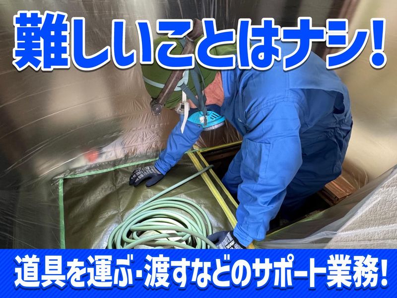 仕事内容 ✅短期募集!4~8月の間で2~3か月OK♪ ✅転職活動や休職明けのつなぎでもOK! ✅残業なし!17時半にはササっと退勤◎ ――――――――――――――――――― 普通の夏に、ちょっと特別な記憶を。 日給保障つきの短期バイトがここにある。 ――――――――――――――――――― 帽子をかぶり、 ゴーグルをつけ、 粉塵マスクで顔を覆う。 ほふく前進で暗い床下へ進み、 ライトで照らしながら 正社員の動きを支える。 「それ、サバイバルゲーム?」 いいえ、これ実は シロアリ防除の現場での一場面。 家の床下にもぐって作業する、 ちょっとレアな短期バイトです。 ――――――――――――――――――― <具体的にやること> シロアリ防除・害虫駆除の会社で、 正社員のサポートをしてもらいます。 難しい作業は一切ありません。 ベテラン正社員の動きを支えるだけ。 ・床や壁にシートを張る(養生) ・薬剤を注入するホースを運んだり支えたりする ・床下をライトで照らす ・道具を渡す、片付けを手伝う 練習が必要な専門作業は、 すべて正社員が担当。あなたは 「指示を聞いて、動く」だけでOKです。 ――――――――――――――――――― ~ある一日の流れ~ ■8:30 出社・道具と薬剤を車に積み込み出発 ↓ ■10:00 1件目の現場到着・お客様に挨拶・養生→床下作業 ↓ ■12:00 作業終了・片付け ↓ ■12:30 お昼休憩(正社員の車の中でゆっくり) ↓ ■14:00 2件目の現場(1日2〜3件まわります) ↓ ■17:00 帰社・道具洗浄・片付け ↓ ■17:30 タイムカードを押して退勤! 残業なし。早く終われば早上がりも◎ 早上がりの日も、 日給は1万1000円が保障されます。 ――――――――――――――――――― 【代表より】 「うちの仕事は、最初は 『床下?怖くない?』 って顔をされることが多いんです(笑)。 でも実際に来てくれた人は、 『意外と楽しかった』 って言って帰っていく。 短期でもしっかり稼いでほしいから、 早上がりの日も日給は変えていません。 夏だけでも、ぜひうちで 働いてみてください。」 ――――――――――――――――――― 【スタッフの声】 「転職活動のつなぎで始めたんですが、 早起き・残業なしの生活リズムが 思いのほか快適で。 子どもと21時に一緒に寝られるのが こんなに気持ちいいとは(笑)」 (30代男性・元転職活動中) ――――――――――――――――――― ✅シロアリには触りません! シロアリは柱の中に潜んでいるため、 直接目にすることはほぼありません。 ✅移動は正社員が運転。 車の中でゆっくりできます。 ✅休憩も車内でOK。 暑い日も寒い日も快適です。