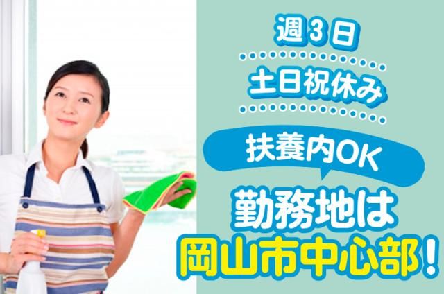 岡山駅近く/オフィスビルの【清掃】午前のみ/週3日勤務/土日祝休み/扶養内OK/交通費支給(一部)