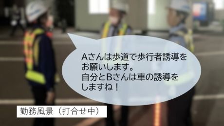変形労働時間制 勤務時間 実働時間:14時間/日 平均勤務日数:1ヶ月あたり1日~25日 日勤/(例) 08:00~17:00 (実働3h~8h/休憩1時間) ※現場による ※残業があった場合は別途支給 夜勤/(例) 23:00~08:00(実働4h~8h/休憩1時間) ※現場による ※残業があった場合は別途支給 【一日のスケジュール例】 ~通し勤務の場合~ <日勤> ▼自宅から現場に直行 08:00 勤務開始 (一日の段取り確認→役割分担決め→担当箇所の周囲の確認→誘導開始) 12:00 お昼休憩 13:00 誘導業務 15:00 勤務終了 ▼自宅に直帰 <夜勤> ▼自宅から現場に直行 23:00 勤務開始 (一日の段取り確認→役割分担決め→担当箇所の周囲の確認→誘導開始) 25:00 休憩 26:00 誘導業務再開 27:00 小休憩 29:00 勤務終了 ▼自宅に直帰