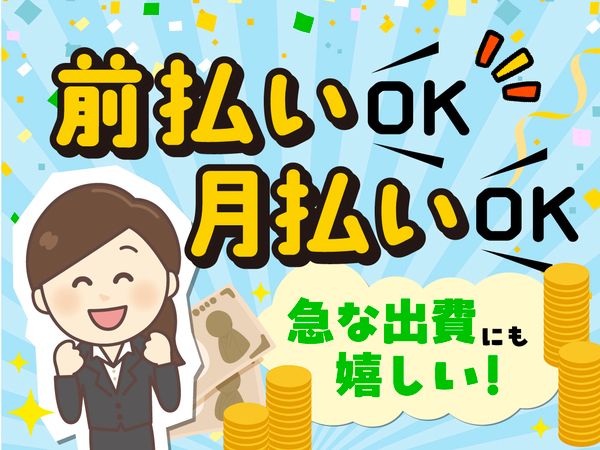 【保険制度】 雇用保険、労災保険、健康保険、厚生年金 待遇 \\充実した福利厚生// ・社会保険完備 ・前払いと月払いから選択OK ・ミニボーナス制度あり ・昇給制度 ・資格手当制度 ・扶養内勤務OK ・副業・WワークOK ・履歴書不要