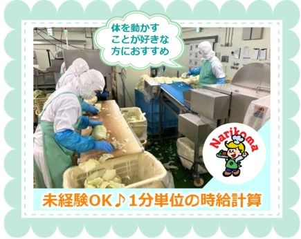 職場環境 【従業員構成】 <職場環境> パート約300人、正社員約120名が勤務中の工場です →食品加工の部署では男女スタッフ活躍中! 【パート】女性:30代4名、40代7名、50代3名/男性:40代1名、50代1名 【正社員】女性:20代1名、40代1名/男性:20代2名、30代5名、40代2名 【派遣スタッフ】27名 工場内は空調が効いており夏場でも涼しく快適です! 【職場の雰囲気】 立ち仕事 長く働ける 知識、経験不要
