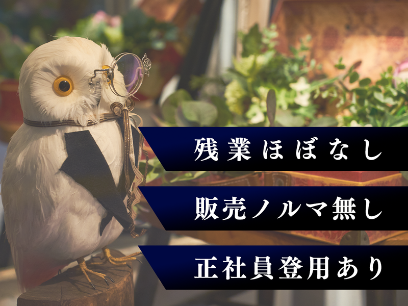 仕事内容 “執事が接客する眼鏡店” 正社員登用あり◎ 残業ほぼなし・ノルマなしの環境で長期的に安定した環境です。 ~未経験の方~ 眼鏡の知識は不要!まずは接客・販売からスタート! 先輩達が丁寧にサポートしますので、慣れてきたら、度数測定、レンズ加工、眼鏡のフィッテング、検品などもお任せします。 ~経験者の方~ 即戦力としてご活躍ください。 接客・販売、度数測定、レンズ交換、眼鏡のフィッテング、検品など幅広い業務をお任せします。 ■1日の流れ 11:00 出社/OPEN準備(清掃、ディスプレイ) 11:30 OPEN ~休憩~ ※スタッフ交代で取得します ~接客/度数測定/レンズ交換 など~ 19:30 CLOSE 退勤 □接客 お客様をお出迎え、眼鏡選びをお手伝いします。 □ディスプレイ 定期的な清掃を行いながら、眼鏡の魅力が伝わるように眼鏡を展示します。 トランクショーの準備や、店内装飾も季節に合わせて変更します。 □レンズ交換 度付きレンズへの交換を希望のお客様へ、度数測定を行います。 当店ならではのサービスとして、別室の“応接室”にてお客様へ紅茶を提供し、レンズのご案内を行います。 □眼鏡のフィッテング お客様のお顔にあわせて、眼鏡の掛け心地の調整を行います。