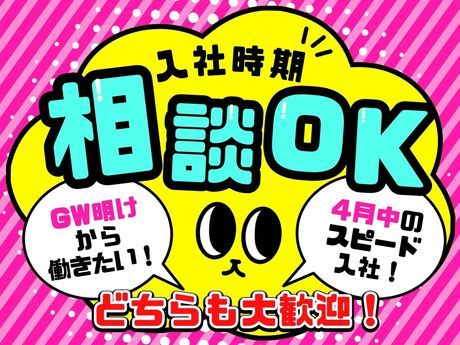 仕事内容 ■お仕事内容■ \4月中のスピード入社!/ \GW明けからのお仕事探し♪/ どちらも大歓迎!!お仕事スタート相談できます \人気のモクモク作業で収入安定♪/ 未経験スタートの方も多数活躍中! 室内作業でのお仕事で、 製品の袋入れや検品などのお仕事を行います。 未経験から始めたスタッフも多数活躍中! 主婦・主夫の方々も活躍中の職場です♪ 基本から少しずつ慣れていける環境です◎ 富里市、八街市、旭市からも通勤が可能な立地です。 ■職場のポイント■ 《Point1》土日祝休み&長期連休あり! 《Point2》20~60代まで幅広く活躍中♪ 《Point3》正社員登用も目指せる安定職場◎ ■直接話を聞きたい方は下記番号までお電話を!!■ 0476-85-6157 採用担当宛 まで お気軽にご連絡下さい。 ★ご好評につき、募集枠が残りわずかです。 ⇒今すぐエントリーを! ■選べる!対面orWEB面接!■ 【対面】 面接地:成田支店 千葉県成田市花崎町800-6 丸喜ビル5F 「京成成田駅」徒歩5分の駅チカ! 【WEB面接】 自宅などお好きな場所で、PCやスマートフォンなどから面接を受けることができます! 応募から最短2日~お仕事スタート可能♪ 応募より1~2営業日以内に、お電話・メールにてご連絡致します◎ ■株式会社ジェイウェイブは…■ ◎長期安定!スピード面接&入社も可能! ◎厚生労働省認定の優良派遣企業 ◎長期で安定して働けるお仕事をお探しの方にピッタリ!