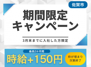 【佐賀県佐賀市】期間限定キャンペーン開催中!最長2か月間時給1650円☆食堂完備&冷暖房完備で環境抜群!
