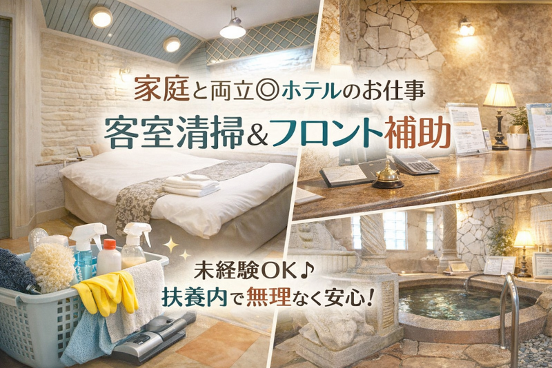 アピールポイント: \このお仕事が主婦さん活躍中の理由✨/ ✔ 平日メインで勤務OK ✔ 午前のみ・夕方のみ・通し勤務も選べる ✔ 接客ほぼナシ!人と話すのが苦手でも安心 ✔ 家庭の都合に合わせて希望休相談OK ✔ 服装・髪型・髪色・ネイル自由 ✔ 扶養内・ブランクありOK 「今日は清掃だけ」「この日はフロント」など、 日ごとに業務が分かれているので気分転換にも◎