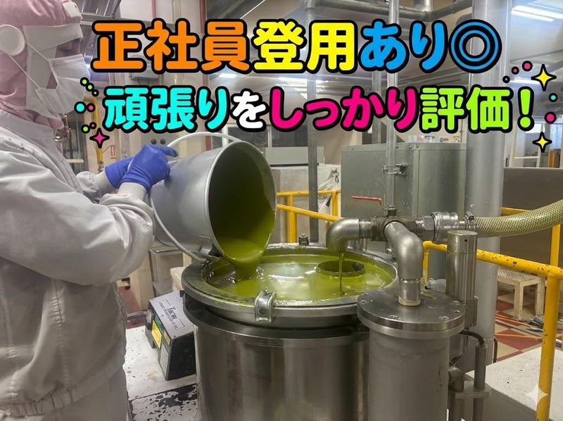 仕事内容 ★ あのチロルチョコの製造!  ̄ ̄ ̄ ̄ ̄ ̄ ̄ ̄ ̄ *‥‥*‥ アピールポイント ‥*‥‥* ✅ 正社員登用の実績あり ✅ 年間休日115日で充実 ✅ 未経験からスタート可能 ✅ 有名なお菓子を作る仕事 *‥‥*‥‥*‥‥*‥‥*‥‥*‥‥ ━━━━━━━━━ ■ 仕事内容 ■ ━━━━━━━━━ チロルチョコや菓子の製造に 関わる業務をお任せします。 具体的には…  ̄ ̄ ̄ ̄ ̄ ̄ ̄ ̄ ̄ ⏩ 製造ライン ┗ チョコの仕込みから供給 ⏩ 包装ライン ┗ 機械での個包装や紙切替 ⏩ パッキングライン ┗ 検品しながらの箱詰め ⏩ その他付随業務 ┗ 清掃や準備作業など 機械操作や検品が中心です。 ★ 作業の流れ/例  ̄ ̄ ̄ ̄ ̄ ̄ ̄ ̄ ̄ 1.原料の仕込み・供給作業 2.機械による個包装・包装 3.包装紙のズレ修正・切替 4.検品・チェック作業 └ 不良品がないか確認 ◆ 慣れれば簡単な作業です ━━━━━━━━━━━━━━━━━━ ■ 入社後の流れ ■ ━━━━━━━━━━━━━━━━━━ 1.工場内ルールの説明・研修 2.先輩による丁寧なOJT 3.簡単な工程からスタート ⭐ 教育体制について 最初は1つの工程だけを 覚えれば大丈夫です。 焦らずじっくり学べます。 基本的には黙々作業ですが 他工程の方と連携をとりながら 働いていただきます。 ━━━━━━━━━━━━━━━━━ ■キャリアアップと働きやすさが叶う■ ━━━━━━━━━━━━━━━━━ ◎ 賞与年2回(実績あり) ◎ 交替手当・深夜手当あり ⭐ 正社員登用について 過去3年間で2名の実績あり。 頑張りを評価します。 ━━━━━━━━━━━━━━━━━━ ■ インタビュー■ ━━━━━━━━━━━━━━━━━━ * 20代・入社5年目男性 最初はアルバイトとして入社しました。 入社してすぐは1つの工程だけ 覚えれば大丈夫とのことで、工場での 勤務は未経験でしたが、 あっというまに時間が経って いることに驚きました。 できることが増えたら、違う工程も 任せてもらえるようになり、 入社して1年くらい経って、 正社員登用となりました。 現在は教育なども行っています。 最初はわからないことも多いと 思いますが、 頑張りはしっかり認めて もらえる環境なので、 将来は正社員として働きたい 方にもぜひ応募いただきたいです。 ⭐会社紹介⭐  ̄ ̄ ̄ ̄ ̄ ̄ ̄ ̄ ̄ ̄ ̄ ̄ ̄ ̄ ̄ ̄ ̄ ̄ ̄ 大正8年設立の安定企業。 チロルチョコ株式会社の グループとして製造を担当。 【「あなた」を笑顔にする】 【笑顔を創造する会社】 この理念に基づき、 チロルチョコを通して 多くの笑顔を作っています。