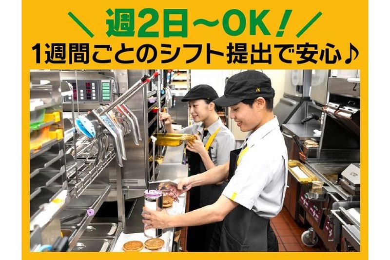 アピールポイント: \平日昼に働きたい主婦(夫)さんに人気のお仕事です!/ ▼週2日・1日2時間から勤務できるので、お子さんが学校や園に行っている間だけ働きたい方、扶養内で無理なく収入を増やしたい方にもぴったり! ▼シフトは1週間ごとの希望提出制なので、家事や育児、学校行事などの予定にも合わせやすい環境です。 ◎「久しぶりのパート復帰で不安…」「接客は少し心配…」という方もご安心ください♪動画マニュアルがあり、先輩スタッフも丁寧にサポートします。 ▼接客なしのキッチン業務も相談できるので、自分に合った働き方で始められますよ! また、≪朝だけ・夜だけ・土日だけ働きたいWワーカーさんや副業希望の方≫にもおすすめです! 短時間勤務ができるので、本業前後の空き時間を活かして働くWワーカーさんも在籍しています◎ 「自分の生活に合わせて無理なく働ける」そんな働き方ができるのが、マクドナルド147大町店の魅力です! マクドナルド147大町店ってこんなお店! 平日昼に働く主婦(夫)さん、朝・夜・土日に働くWワーカーさんなど、さまざまなスタッフが活躍しているお店です! 「短時間で働きたい」 「家事や育児と両立したい」 「副業で効率よく収入を増やしたい」など、 それぞれの生活スタイルに合わせて働けるので、無理なく続けやすい環境です◎ ★世代を超えて和気あいあいと働いている店舗なので、新しく入る方もなじみやすい雰囲気です。気になる方は、働き方や仕事内容のお問い合わせだけでもお気軽にどうぞ! 応募した人の注目ポイントをまとめました! ■ 「自分らしく」働けるポイント 【自由なシフト制】 週2日・1日2時間~OK。提出は1週間ごとなので、予定が立てやすい! 【選べる職種】 接客を楽しむ「ホール」か、黙々と進める「キッチン」か選べます。接客なしもOK! 【うれしい特典】 おいしい「まかない」で食費を節約。急な出費に助かる給料前払い制度も完備! 【自分スタイルで】 髪色・髪型は自由。あなたらしい姿で働けます。
