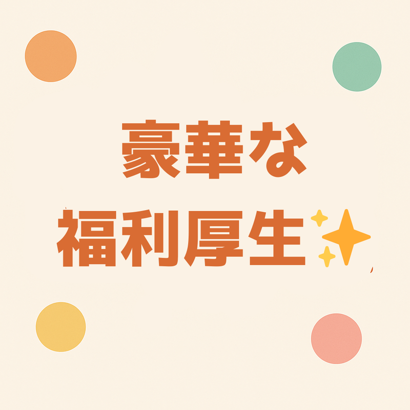 【保険制度】 雇用保険、労災保険、健康保険、厚生年金 待遇・福利厚生 【福利厚生】 ・社会保険完備(労働条件により加入) ・定期健康診断(労働条件により受診) ・インフルエンザ予防接種費用一部支給 ・法人契約会員制保養施設(エクシブ)※箱根離宮等 提携しているリゾートホテルの利用が可能です。 ・東京ドーム(巨人戦) 年に2回全職員対象に、東京ドームで開催の巨人戦ペアチケットを職員の希望者で抽選を行い、当選した職員にプレゼント ・メンタルヘルスカウンセリング 専門のカウンセラーによるカウンセリングを受けられます。 (相談した方のプライバシーや個人情報は護られます) 他、お年玉企画等。