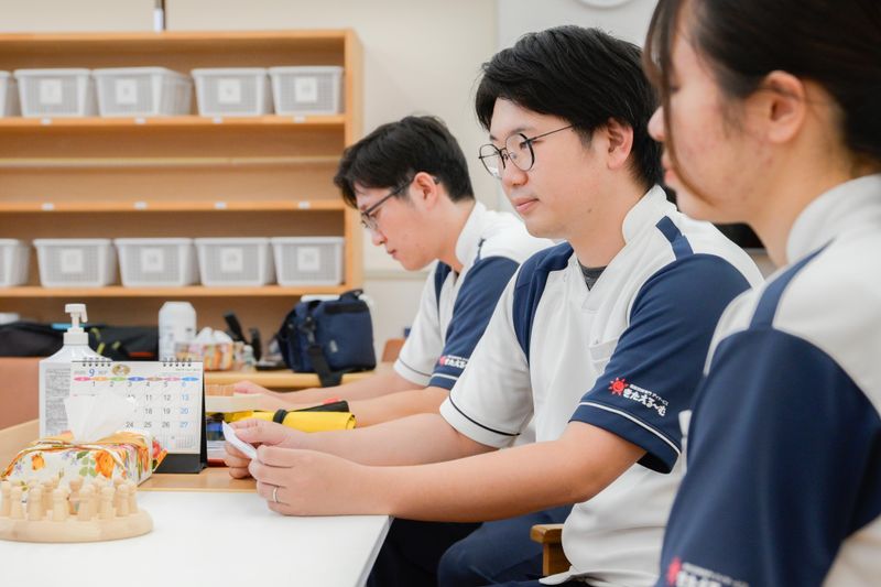 職場環境 男女比はほぼ半々。 介護の経験がある方も、 未経験からスタートした方も、 それぞれのペースで活躍中! 定期的に勉強会や情報共有の ミーティングを行っており、 情報共有が丁寧で、風通しも良く、 何でも相談しやすい雰囲気です◎ 喫煙所:なし(敷地内全て禁煙)