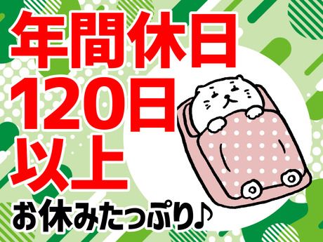 ☆土日祝休みの週休2日制 ☆残業ほぼナシ ☆年末年始・GW・お盆休みあり ☆年間休日120日以上