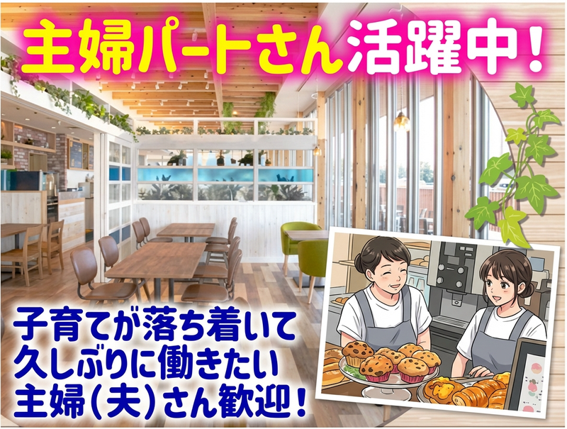 職場環境 ★スタッフ同士の関係良好★ 9割が女性スタッフの職場♪ 10代、20代、30代、40代 の幅広い年代が活躍中です! 高校生1名、大学生1名、 主婦パート8名が在籍中! 喫煙所:なし(敷地内全て禁煙)