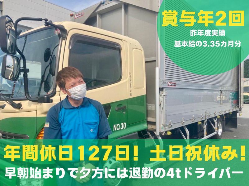 仕事内容 東証プライム上場グループ中核企業へ ⭐最後の転職を応援します! - ✅経験・安全実績は給与(昇給)へ直結! 月収30万~40万円を実現! 賞与年2回(3.35ヶ月分/直近実績) ✅有給消化率100%を目指す現場です。 全社員10日以上消化、平均15.3日! 土日祝休みで年間休日は126日! 「休みやすい」環境を実績で証明! ✅ ⼀⼈⼀台専⽤⾞を貸与します! 埼玉、群馬向けメインの短距離配送! 省庁認定”働きやすい職場認証制度” 取得の環境で無理なく毎日帰れます。 ◎5:00〜14:00が定刻のお仕事! ✅子育て世代の働きやすさを応援! 家族手当やベネフィットサービスも充実 出産祝金:最大15万円支給! 転勤なしで大手&地元で働ける(管理職除く) * … * … * … * …* … * …* …* … ⭐会社について⭐  ̄ ̄V ̄ ̄ ̄ ̄ ̄ ̄ ̄ ̄ ̄ ̄ ̄ ̄ ̄ ̄ ̄ ̄ ̄ 上場企業のレンゴーの100%出資子会社 として、レンゴーグループの物流部門を 担当しています。業界最大手グループの 一員として、安定した基盤のもとで事業 展開中!従業員の働き方を重視し、給与や 待遇面での還元に、力を入れているのが 特徴です。その結果、定着率も高く、 長く働ける環境が整っています◎ 【仕事内容】 組み⽴て前の梱包用段ボール配送を お任せします。 ⻘果物、飲料、製造⼯場など様々な企業へ お届けいただきます! ■段ボールの数量等の検品 ■トラックへの積み込み ■1ルートにつき2〜3件の配送 ■配送先での積み下ろし * … * … * … * 【入社後は…】 先輩スタッフと同⾏して流れを 覚えていただきます。 運転にも問題なければ独り⽴ち︕ 専⽤⾞を貸与します︕ * … * … * … * 【配送エリアは…】 *群馬県・埼玉県が中⼼。 *⾼速道路を利⽤する場合社用ETC有。 * … * … * … * 【トラックは…】 *⼀⼈⼀台専⽤⾞を貸与します︕ *⾃分の世界にするスタッフも、 無駄なくきれいにしているスタッフもおります。 *全⾞両にドライブレコーダー完備︕ *デジタルタコグラフ、バックアイカメラも 搭載しているので安⼼して配送できます︕ * … * … * … * 【積み込み・下ろしは…】 ⼿作業もフォークリフト利⽤もあります。 フォークリフト免許保持者優遇ですが、 お持ちでない⽅も入社前取得OK︕ ⼿作業はありますが、重いものを⻑い距離 運ぶことはありません。 荷台内の商品の移動も、ローラーがついている のでラクラクです。 * … * … * … * 【お客様先は…】 ⾷品会社や農協などの法⼈施設がお客様です。 既存のお客様ばかりで安⼼です。 1ルート2〜3件、 1⽇につき2〜3ルートの運⾏です。 * … * … * … * …* … * …* …* … ⭐キャリアプランについて⭐  ̄ ̄V ̄ ̄ ̄ ̄ ̄ ̄ ̄ ̄ ̄ ̄ ̄ ̄ ̄ ̄ ̄ ̄ ̄ 中型トラック運転手として実績を積んだ先は、 ご希望の応じて大型ドライバーへの転身もサポート! 資格取得支援制度などを通して、 社内キャリアアップを応援していきます!