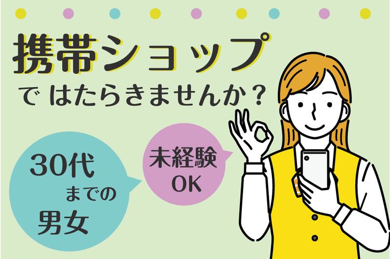 仕事の内容 取手市内エリアにある大手携帯ショップにて 販売や接客をお任せいたします。 具体的には、 ・携帯販売店にて受付 ・お困りごとやアドバイス ・各種契約や事務手続き ・電話対応 ・料金プランの案内や提案 等を行って頂きます。 未経験の方でも大丈夫です! しっかりとした研修制度があるので、安心してお仕事をスタートしていただけます。 接客や販売のお仕事に興味があるという方、 是非チャレンジしてみませんか? 30代までの男女が活躍中の職場です♪ お気軽にお問い合わせください♪