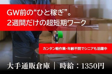 3月末・4月初旬の短期勤務!【3月・4月特別手当2万円支給!/規定あり】時給1350円~1688円!週3日~、日払い、週払いOK!