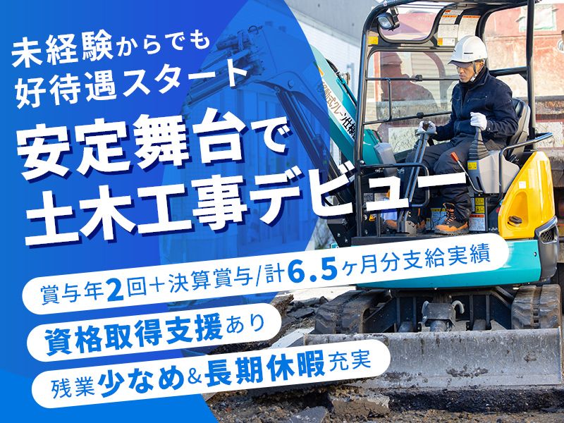 必要資格・経験 <必須> ・普通自動車免許(AT限定可) <歓迎> ・土木工事の実務経験 ・各種土木資格 ●30代活躍中の職場! ●女性も活躍中です! ●未経験者雇用実績あり!安心の教育実績