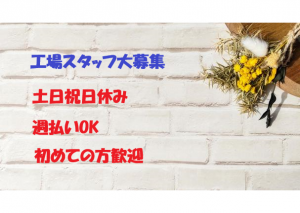 土日曜日休みの交代勤務/長期休暇ありしっかりお休みが取れる/残業少なめ。重量物少なめの工場です。