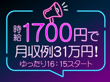 時給1,700円~2,125円 給与 時給 1700円~2125円 \入社から2か月間は、特別時給1700円~2125円!/ 3カ月目以降は時給1400円~1750円です! ・日払いOK!急な出費にも対応可能です! 交通費:交通費支給 通勤交通費支給(電車の方は定期代、車バイク通勤の方は距離(1km単位)応じて支給) 【給与例】 給与例 月収例31万675円 時給1,700円×7.75h×21日+各種手当 ※交通費別計上 ※残業・休出は任意です。