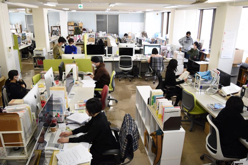 職場環境 落ち着いた環境で、たくさんの本に囲まれながら、自分のペースで仕事ができます。 まじめで勉強熱心な社員が多く、わからないことは丁寧に教えてもらえます。